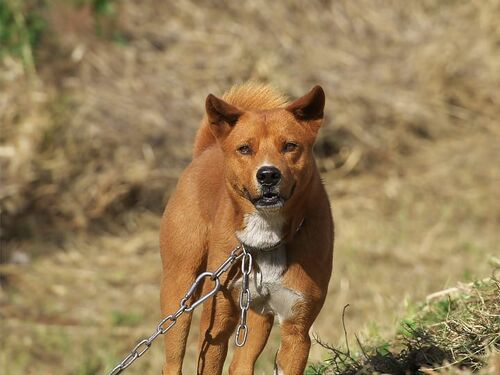 河川敷で出会った犬さん。長い鎖につながれていました。 大型犬なので、そばを通る時、ちょっとびびってしまいましたが、 吠えることもなく、おとなしく遊んでいる様子でした。 犬の種類はさっぱり分からないので調べたところ、「バセンジー」という種類のよ…