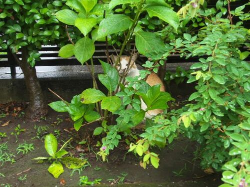 7月4日撮影 植栽の中で雨宿りしていたのに、律儀に顔を出して挨拶してくれるチャッピー。 ありがとう、チャッピー。濡れちゃうよ。雨のかからないところに潜ってね。 JR高架下の「ハルシャギク」。別名「蛇の目草」。 細くて頼りない茎ですが、雨の中、健気…