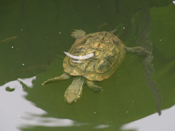 2012-06-25 クサガメ(臭亀)? 生き物その他 6月25日撮影 中山法華経寺 龍王池 ハスの葉の間をくぐりながら泳いでいた小型のカメさん。 カメコーナーの中にいるカメとは種類が違います。 甲長が10センチほどしかありませんでしたが、クサガメの子供でしょうか。 時々ハスの葉の上に顔を出して一休み。「プハァ~」(↓) 爪の先は金のマニュキア? おしゃれですね。 OM-D E-M5 + LUMIX G VARIO100-300mm F4.0-5.6