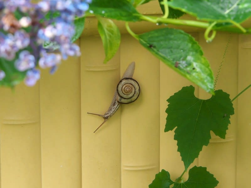 以前もここのお庭で何度か見たことのある「ミスジマイマイ」です。(たぶん)