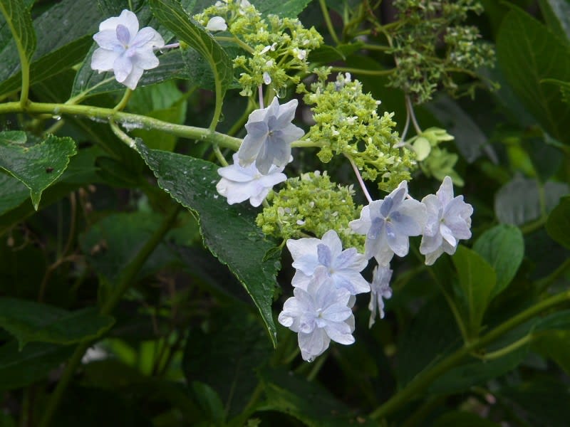 その向こうで咲いているアジサイが、これまた淡いブルーがみずみずしい。